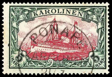 Die Karolinen-Inseln sind eine Inselgruppe in Mikronesien, und waren in der Zeit von 1899 bis 1916 Deutsche Kolonien. Auf diese Zeit geht auch die Briefmarkengeschichte der Karolinen zurück. Die ersten Briefmarken wurden 1899 herausgegeben. Die Marken trugen den Aufdruck »Karolinen«. Dieser Aufdruck wurde diagonal auf die Marken gedruckt. Von diesem Aufdruck gab es zwei verschiedene Varianten. Die eine war ein steiler Schriftzug, die andere eine, die weniger steil war. Von letzterem gibt es nur noch sehr wenige, deshalb gelten diese auch als sehr selten und auch dementsprechend teuer. Da die Karolinen-Inseln Deutsche Kolonien waren, galten hier die Währungen Mark und Pfennig.